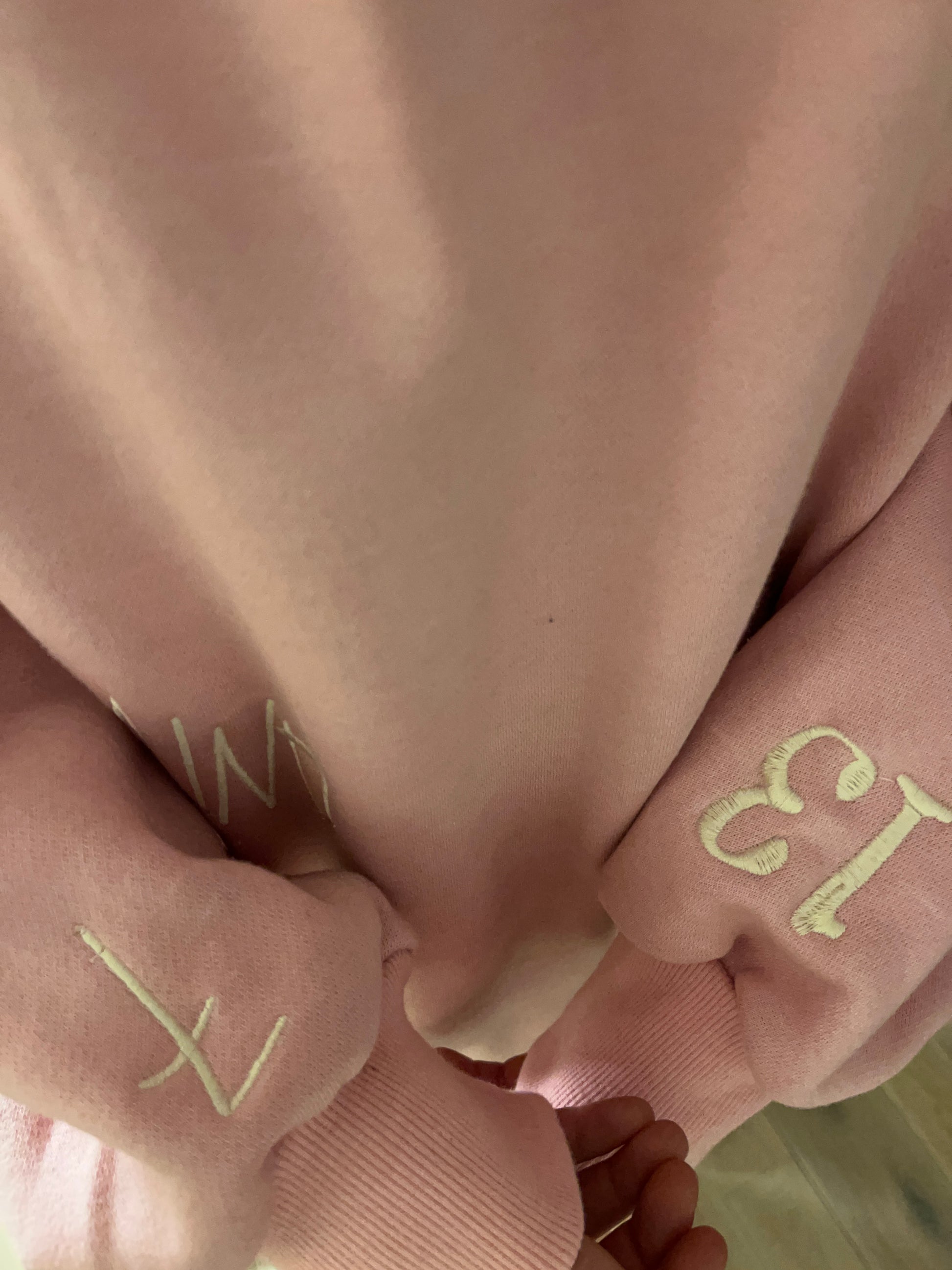 The pink colour gives you a glow up and the white tattoos don't scream BTS but give a nice touch to our fan love for him.