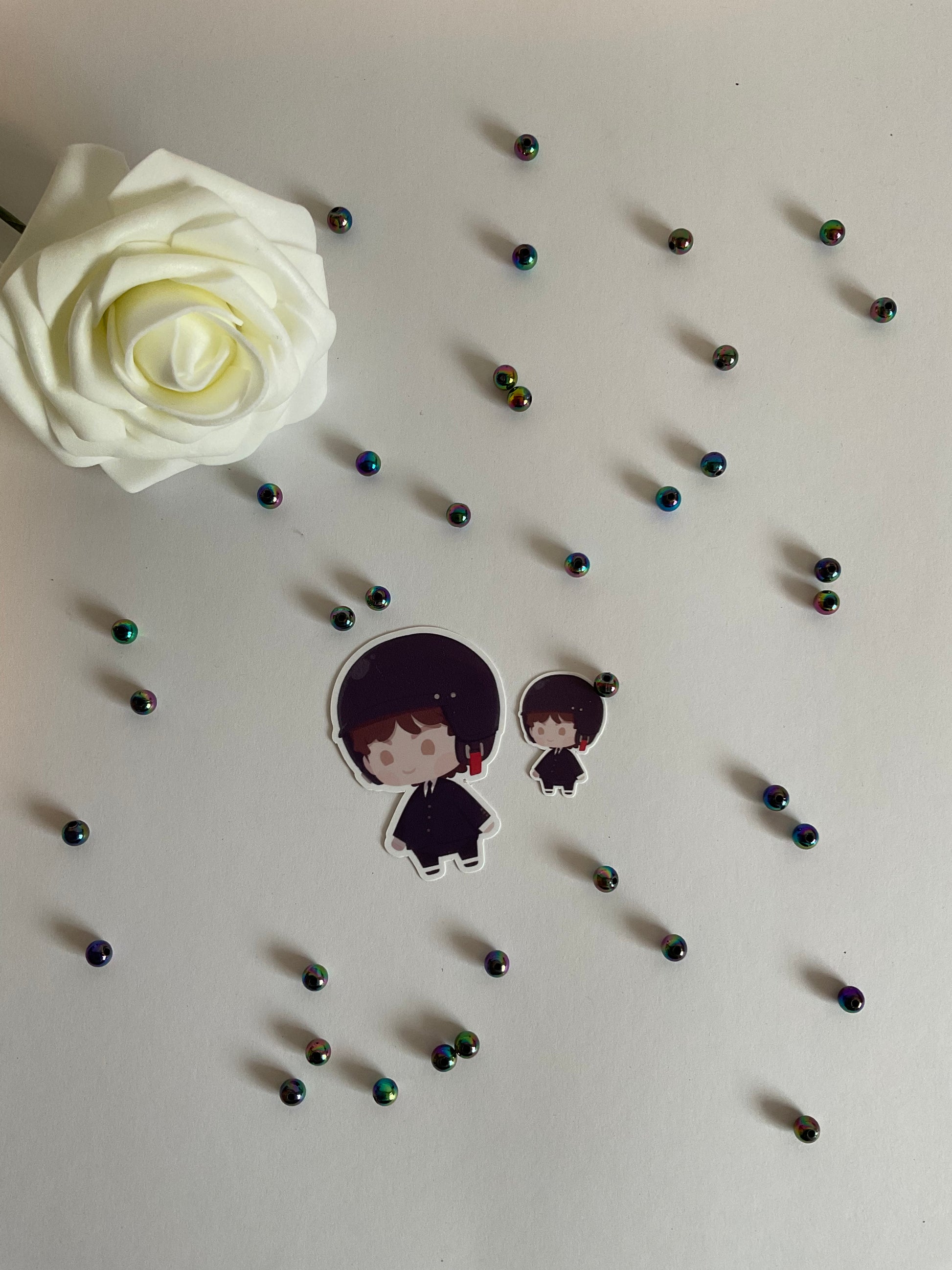 I drew him myself. The sticker is printed on glossy, waterproof and scratch resistant vinyl paper and cut with my silhouette.