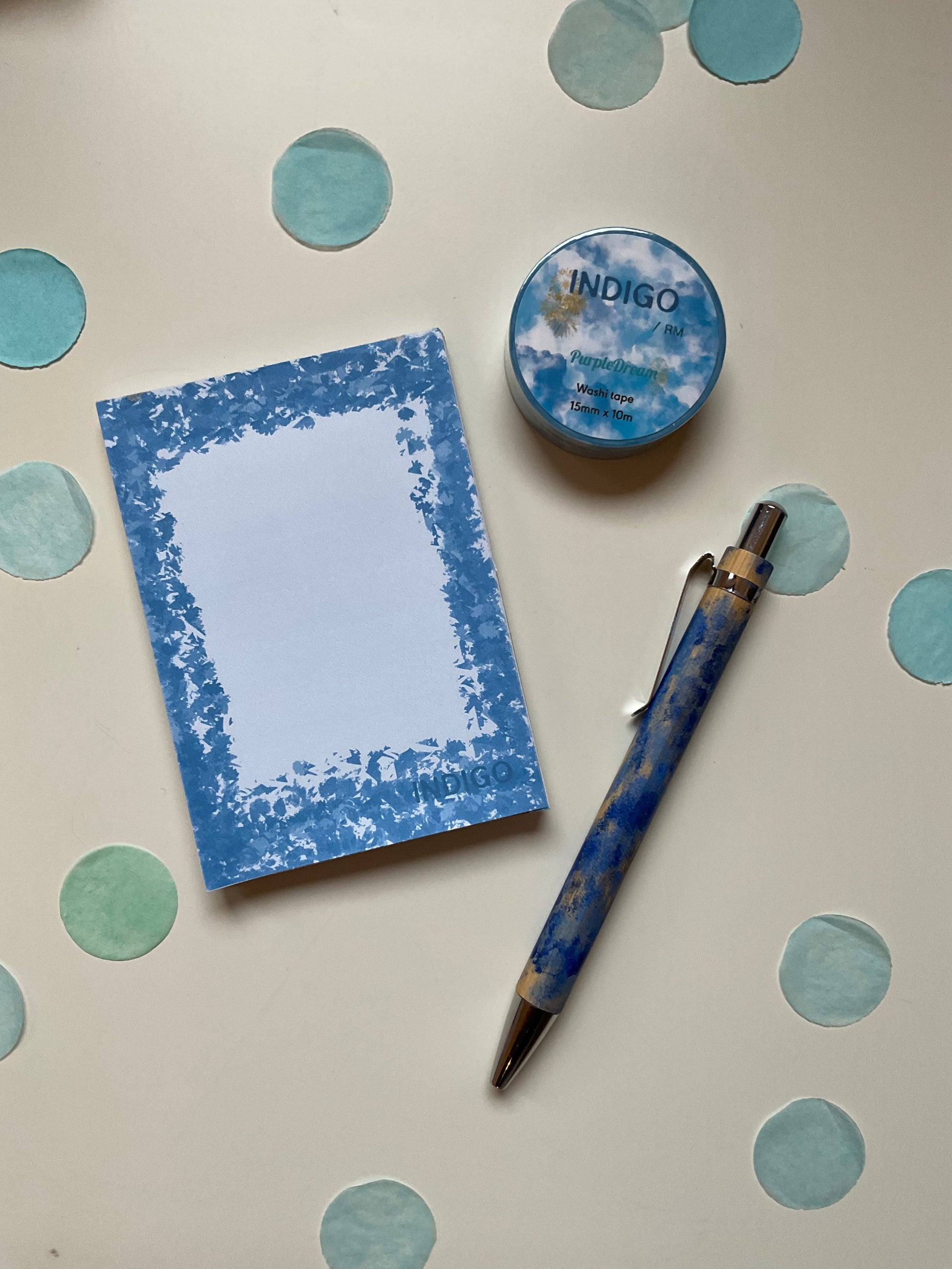 The notepad has a a7 size with 50 pages and is perfect for trading notes or just little notes in your daily life. The washi tape is 15mm wide and 10m long.