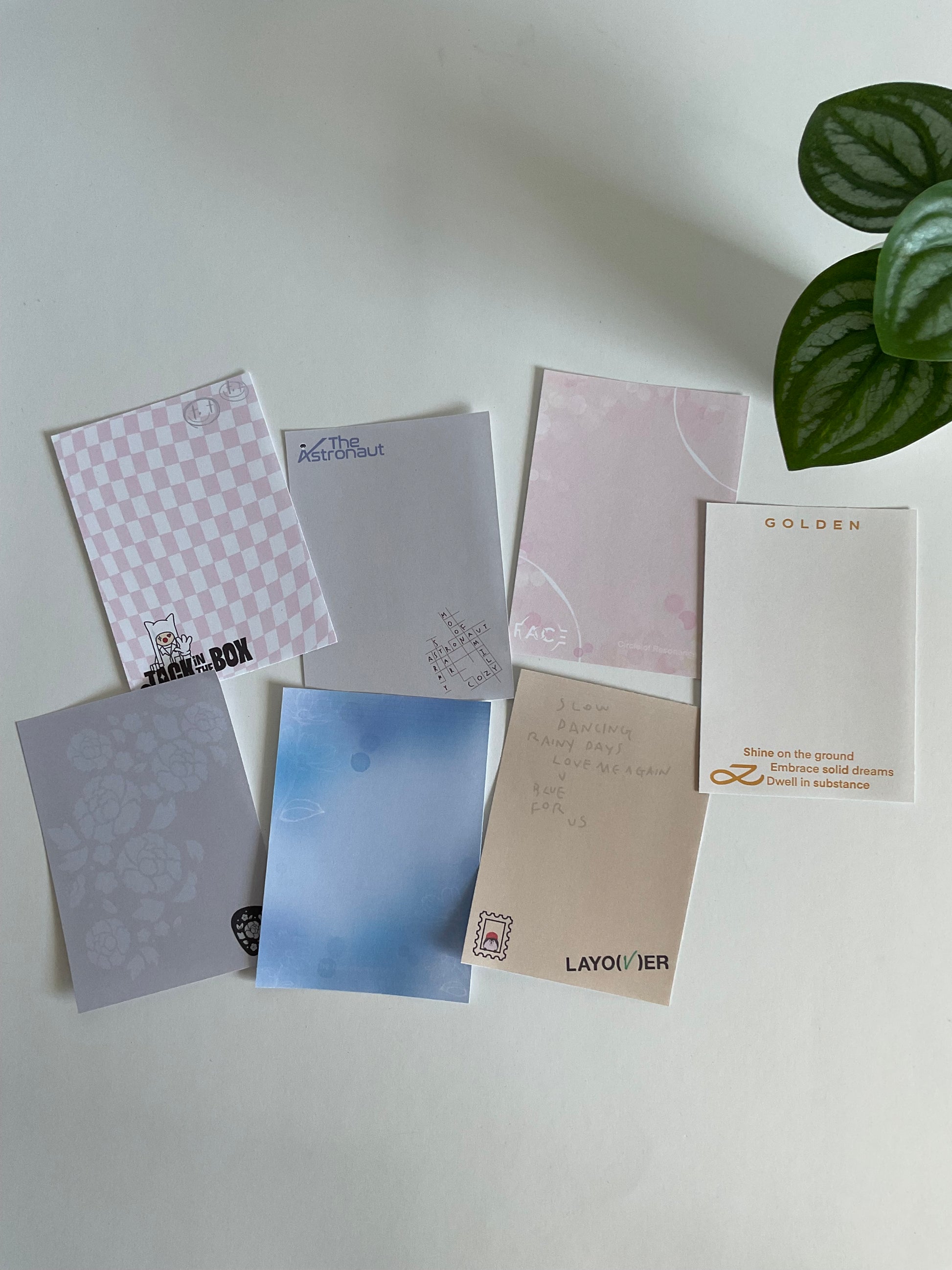 It has a a7 size with 49 pages (7 pages of each design) and is perfect for trading notes or just little notes in your daily life.