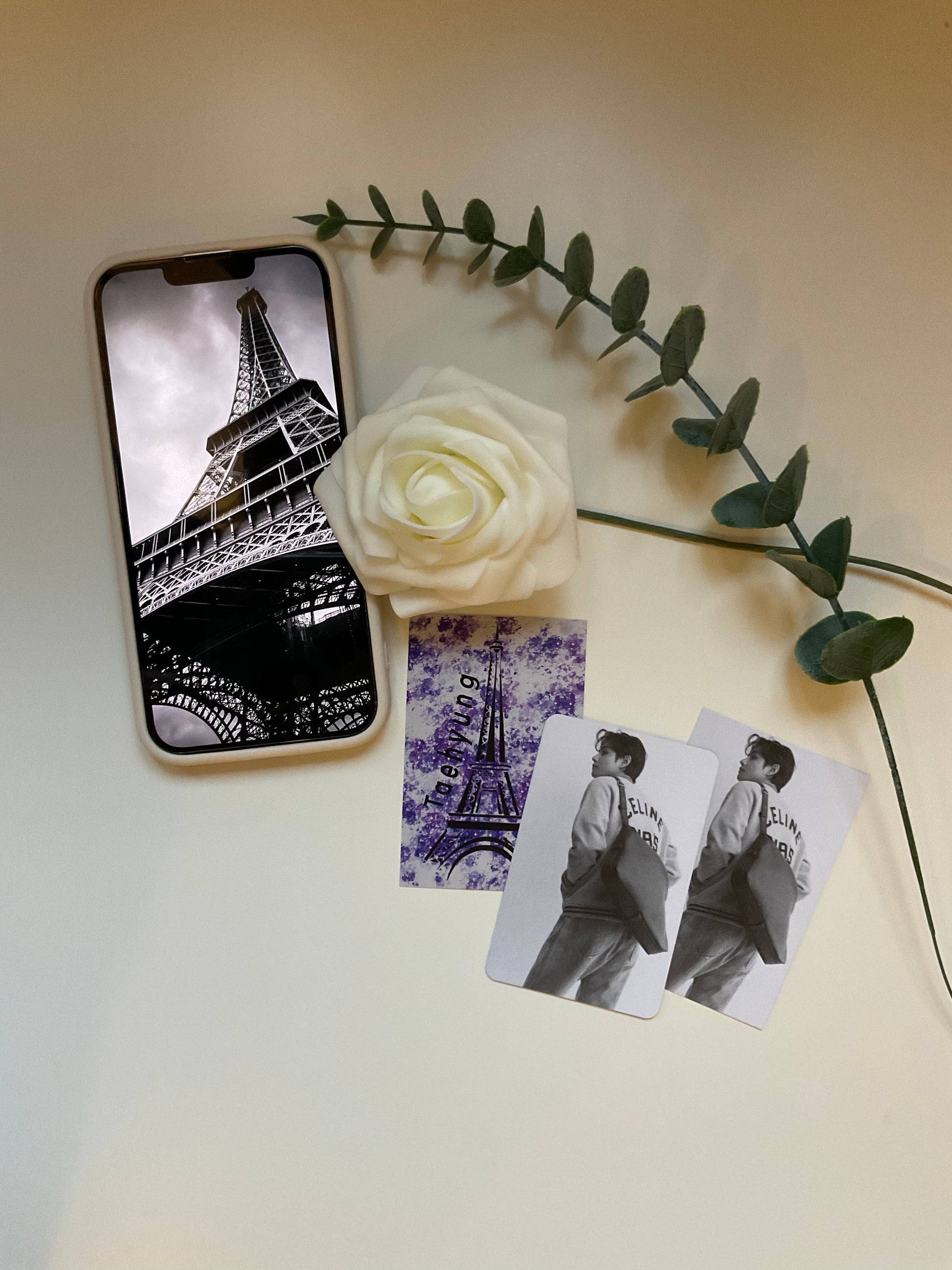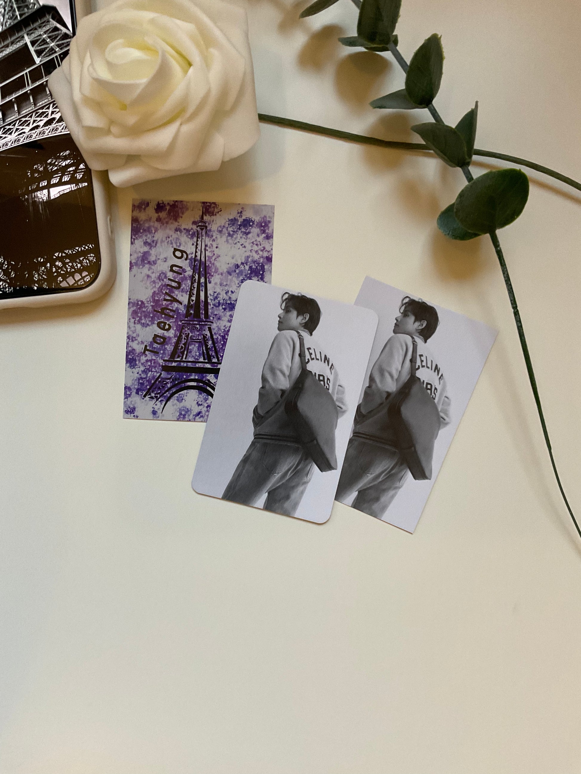 High quality photocard with a photo he posted himself in his Celine outfit. It is printed on matte 300 mg paper. The backside is self designed.