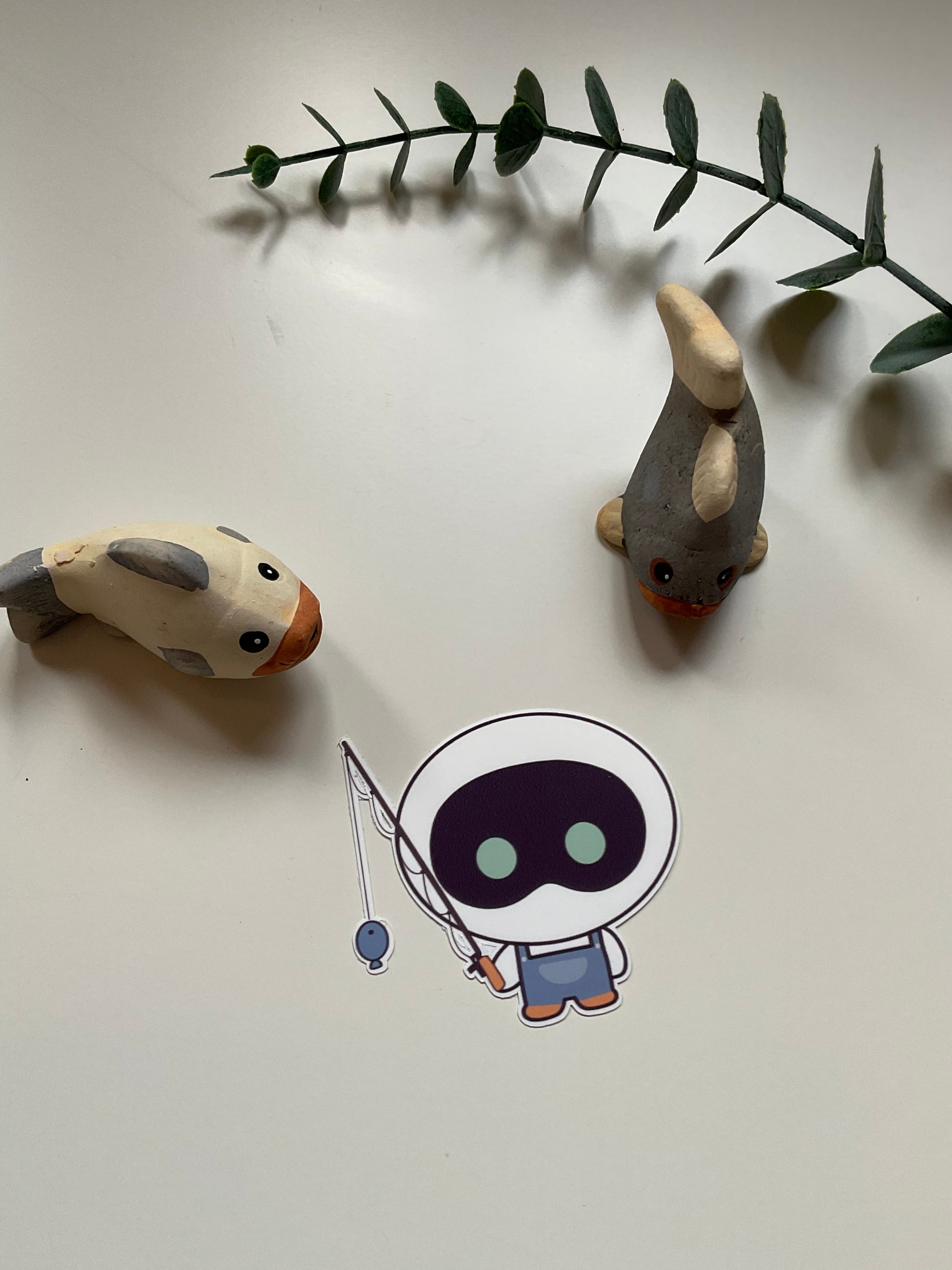 I drew him myself. The sticker is printed on glossy, waterproof and scratch resistant vinyl paper and cut with my silhouette.